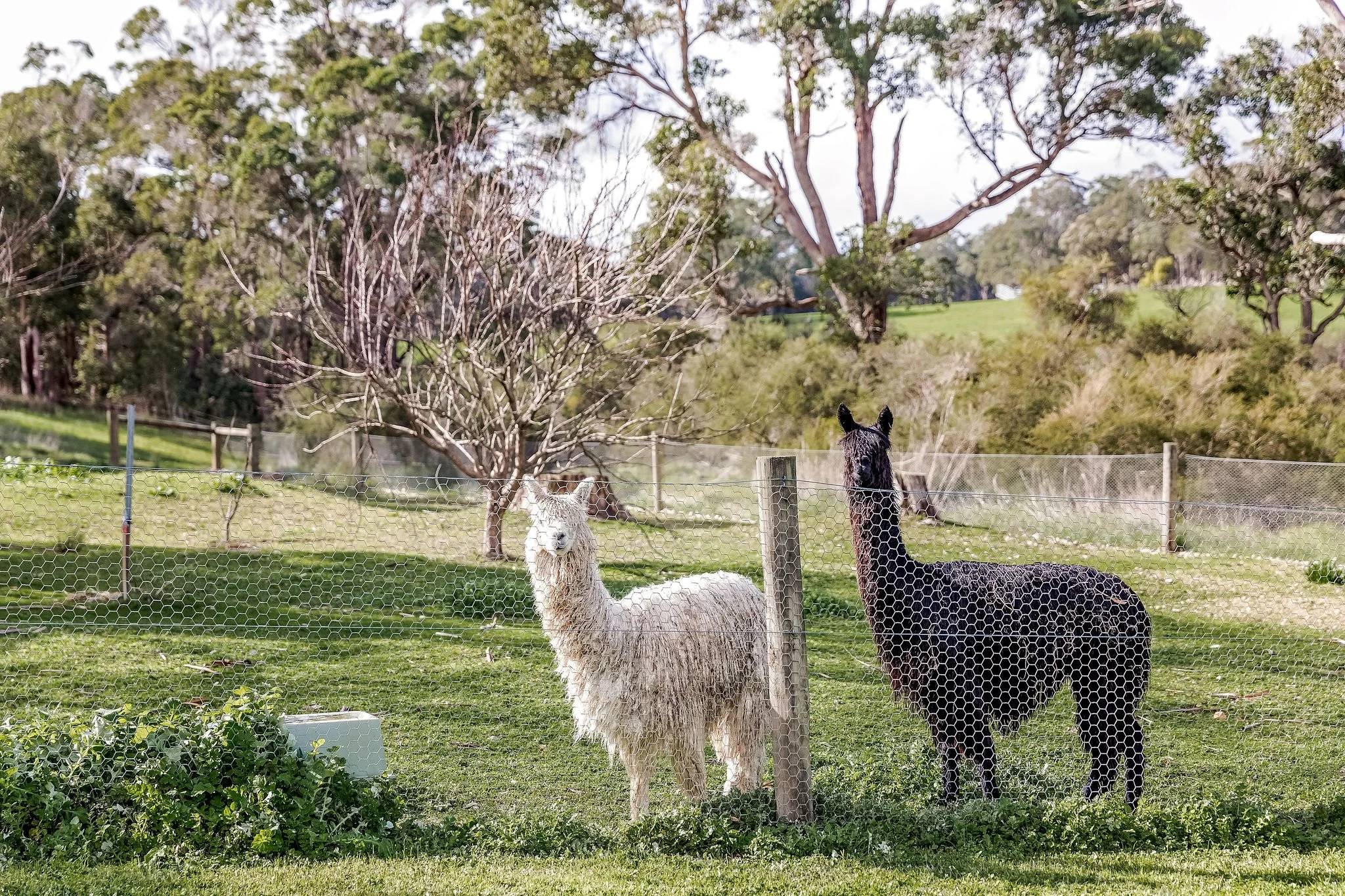 Unfortunately, at this stage we don’t allow pets to the farm. For your pets safety and to protect our livestock and native animal’s we feel its best to leave your fury friends at home.